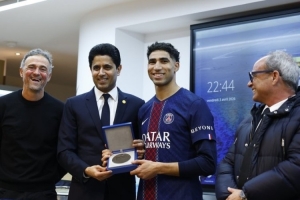 出场次数里程碑,巴黎圣日耳曼为阿什拉夫颁发200场纪念奖章