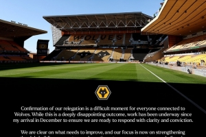 狼队主席公开信:确认降级是艰难时刻,我们清楚需要改进之处